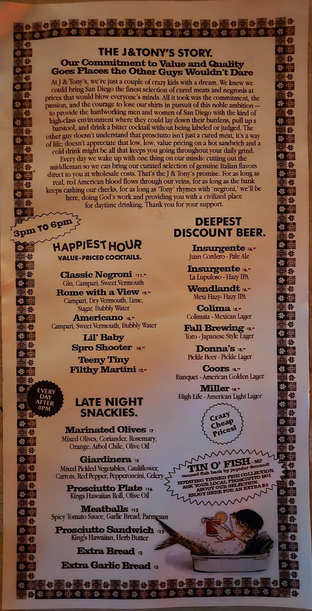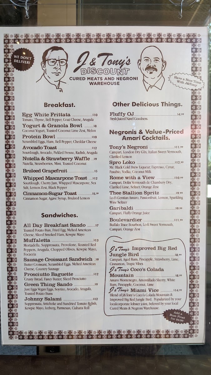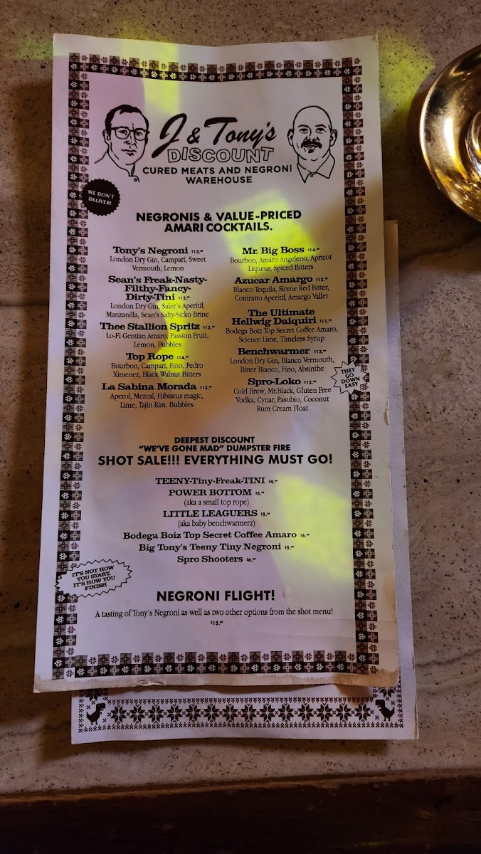 Welcome to J & Tony’s Discount Cured Meats And Negroni Warehouse, an eclectic culinary gem located in the heart of San Diego. This unique spot specializes in exquisite cured meats and exceptional Negronis, making it a must-visit destination for food and cocktail lovers alike.